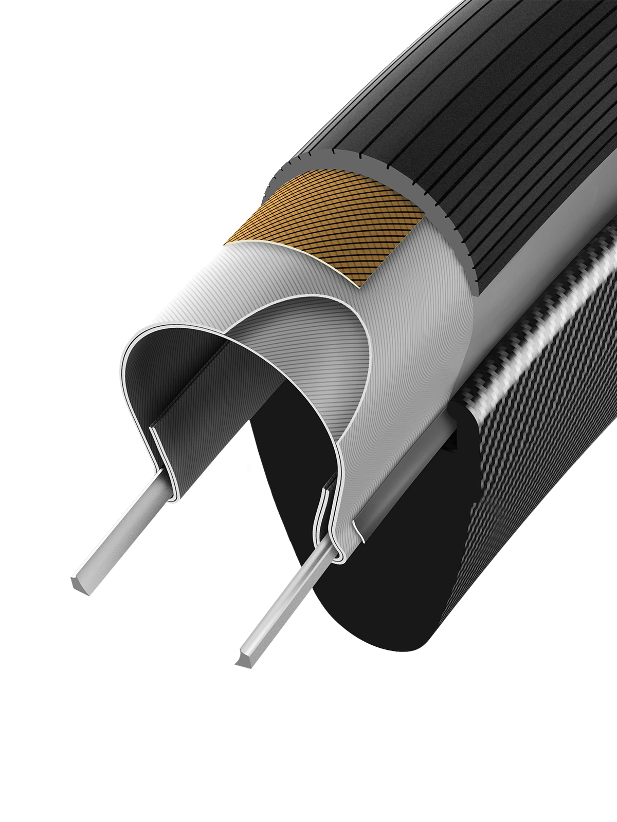 29 mm tire section width on 25 mm internal rim width, with optimized casing shape and tread width for modern wide rims, to improve aerodynamics, puncture resistance and cornering capabilities at maximum lean angles.